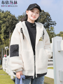 羊羔毛外套女冬装2022新款初中高中学生韩版宽松加...