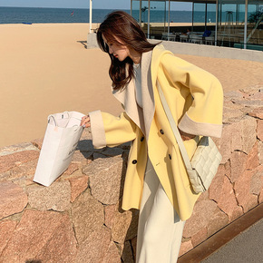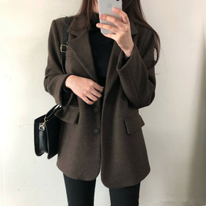 2021冬装新款韩国学院风单排扣加厚保暖西服领休闲...