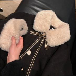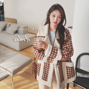 实拍2021新款羊羔毛拼接毛呢外套女冬季学院风气质...