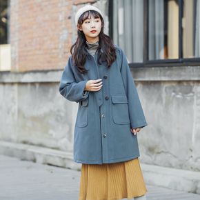 复古毛呢外套女冬季新款中长款宽松学院风气质过膝呢子...