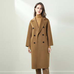 2021秋冬新款双面羊绒大衣女长款过膝气质双排扣优...