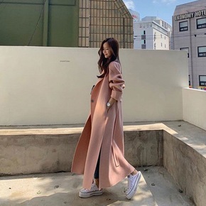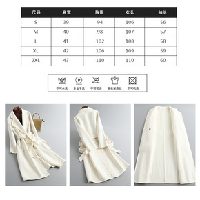 系带收腰双面零羊绒大衣女长款过膝2021年新款流行...