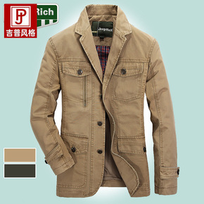 JP新款男装纯棉小西装男士休闲西装领夹克多袋宽松男...