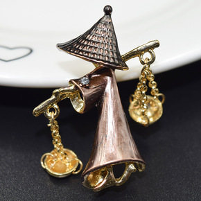 特色复古胸针 斗笠老翁挑担子别针男女通用大衣配饰 ...