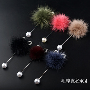 水貂毛球胸针胸花商务庆典一字针皇冠兔耳朵水貂毛胸针...