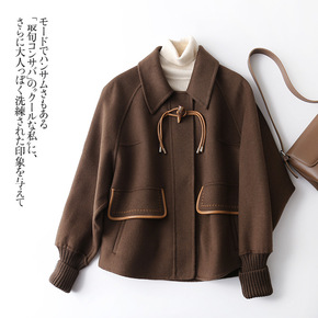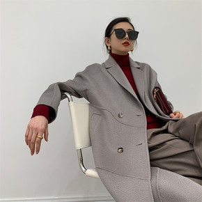 魔鬼大衣经典春款气质小翻西装领双面毛呢外套2022...