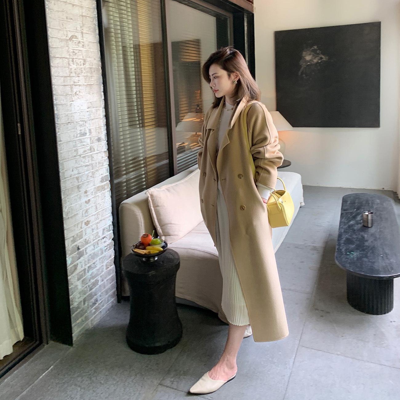21年秋冬季新款女士毛呢外套东大门气质韩版长款双面...