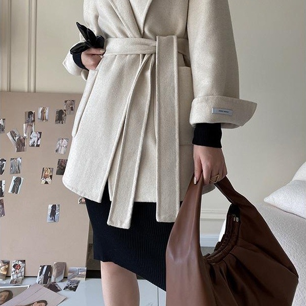 2022春夏欧美ins北欧风TOTE经典双面尼大衣...