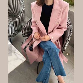 【ins】直筒型气质通勤韩版羊毛无腰带双面非羊绒西...