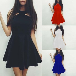 速卖通ebay 4色无袖大摆蓬蓬露背连衣裙 034...