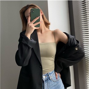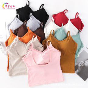 新欣 拼色卡卡撞色吊带大U露肩背美背加长打底背心抹...