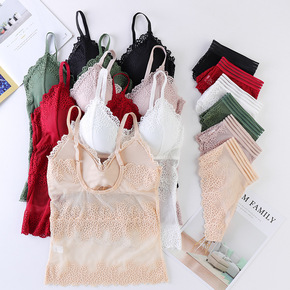 爆款法式长版蕾丝文胸 无钢圈大U背长款性感网纱透明...