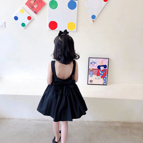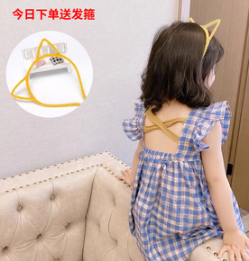 女童连衣裙夏季童装洋气格子露背公主裙儿童薄款背心吊...