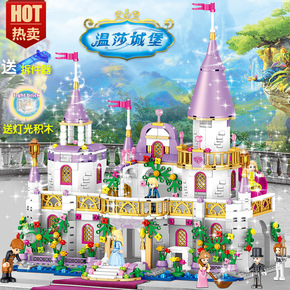 潮宝人人童话粉红城堡积木模型儿童小颗粒拼装机构礼品...