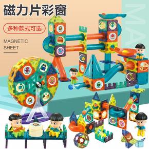 跨境彩窗磁力片玩具管道磁铁儿童滑道滚珠磁性积木轨道...
