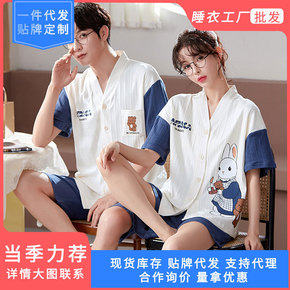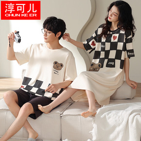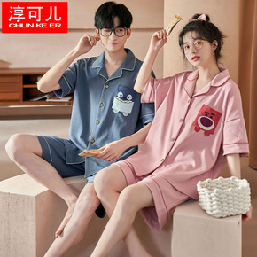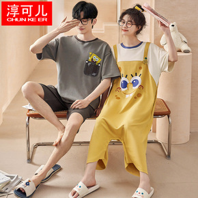 情侣睡衣女睡裙夏季爽棉短袖薄款全棉夏天男士2022...