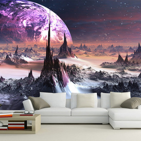 3D星空顶太空星球主题房酒店KTV立体S背景墙纸壁...