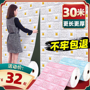 墙纸自粘卧室温馨3d立体墙贴泡沫隔音背景吊顶天花板...