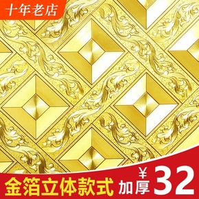 吊顶墙纸 菱形格子KTV金箔金色金黄色客厅酒吧过道...