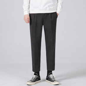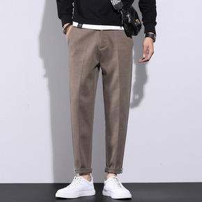 呢子西裤男士秋冬季韩版潮流百搭宽松九分裤休闲直筒加...