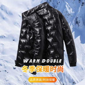 冬季短款羽绒服男新款官网保暖连帽格子冬装外套...