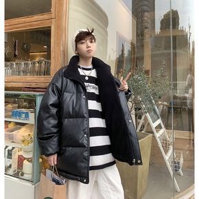 两面穿羊羔毛外套男冬季潮牌ins棉服加绒加厚大棉袄...