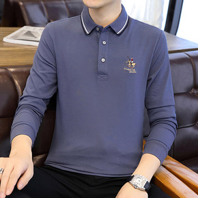 半高领双面德绒打底衫男新款长袖刺绣秋衣潮高弹力内搭...