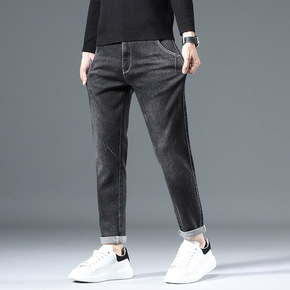 秋冬款休闲裤男士直筒修身小西裤加绒加厚潮宽松长裤子...