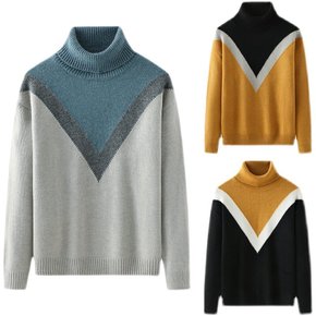 男士高领毛衣2021新款秋冬季潮流搭配针织衫帅气撞...