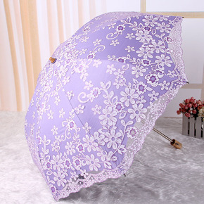 蕾丝绣花伞H6223 黑胶防紫外线虎骨二折遮阳伞雨...