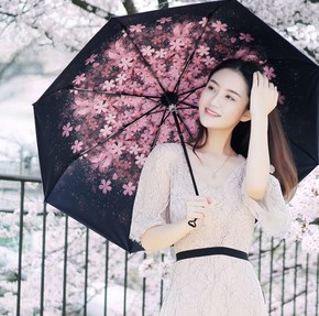 雨伞女太阳伞黑胶防紫外线遮阳伞小清新晴雨伞创意森系...