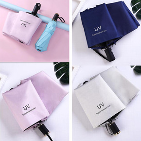 纯色防晒UV遮阳伞 黑胶折叠三折伞 加固晴雨伞定...