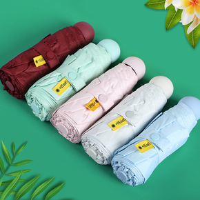 蕉下代 工厂新款现货6骨胶囊五折伞黑胶防晒遮阳晴雨...