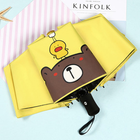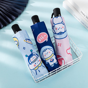可爱卡通全自动雨伞黑胶防晒遮阳伞男女学生少女心三折...