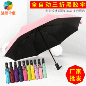 供应全自动黑胶防晒晴雨两用遮阳伞8骨三折黑胶伞 商...