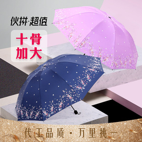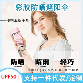 雨伞印制logo遮阳防晒防紫外线折叠晴三折太阳伞批...