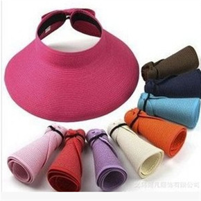 无顶沙滩帽遮阳空顶帽草帽女夏天防晒折叠大沿太阳帽成...