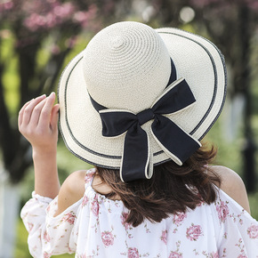 2021优雅日系大沿草帽大帽檐大头围女纯色号码宽檐...