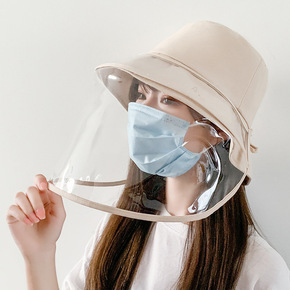 可拆卸防护帽渔夫帽防飞沫帽子女夏天韩版防紫外线面罩...
