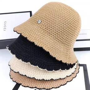 日系纯色波浪边渔夫帽子女百搭荷叶边秋天太阳帽夏季时...