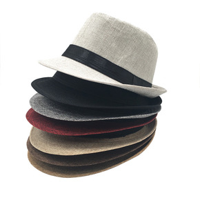 棉麻方块巴拿马纯色小礼帽爵士帽太阳帽男士女士情侣款...