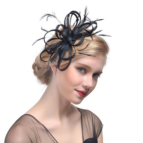欧美精品麻纱新娘头饰羽毛带钻头花发夹发饰...