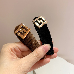 时髦潮人几何金属F字母发夹丝绒褶皱BB夹欧美风百搭...