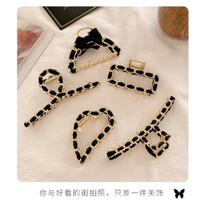 高品质~韩式ins鲨鱼夹发抓丝带金属发夹后脑勺黑色...
