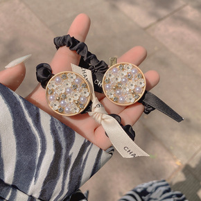 小雏菊圆环黑色发绳女复古橡皮筋花朵发圈个性简约水钻...