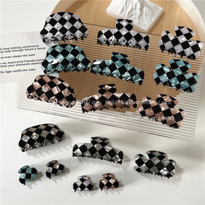 韩国东大门时尚黑白棋盘格发夹海绵水滴BB夹菱形格子...