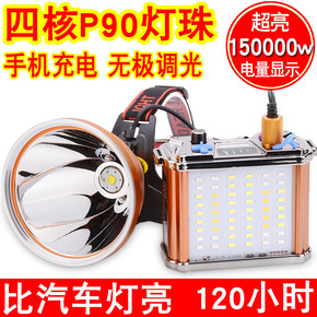 P90头灯锂电强光充电超亮远射钓鱼夜钓灯头戴式LE...