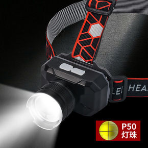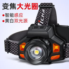 感应头灯强光充电超亮夜钓鱼灯户外登山头戴式手电变焦...