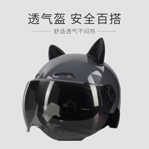 新品电动车摩托车头盔男女士头灰夏季可爱防晒半盔防晒...
