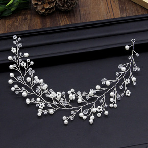 速卖通热销新娘发饰珍珠发带 金银水晶纱礼服配饰头饰...
